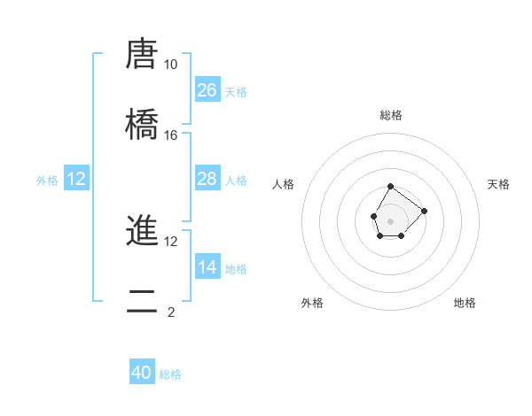 唐橋 進二さんの総格は40画の2点!