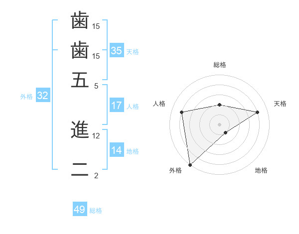 歯歯五 進二さんを姓名の画数から五運を鑑定