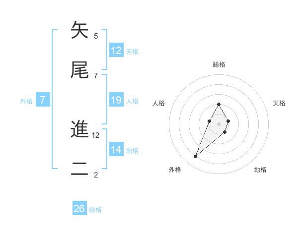 矢尾 進二さんを姓名の画数から五運を鑑定