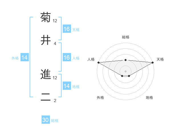 菊井 進二さんの天格は16画の5点!