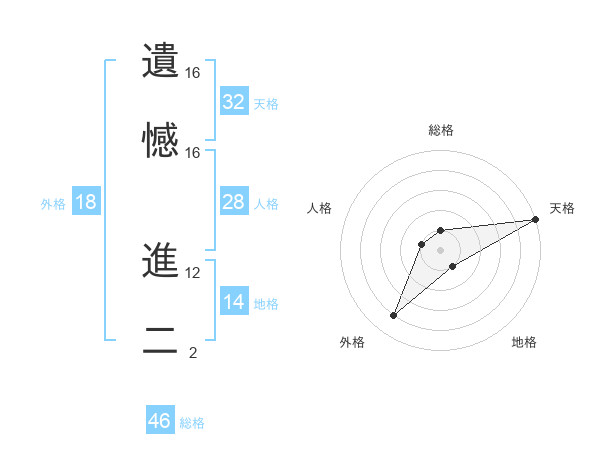 遺憾 進二さんの地格は14画の1点!