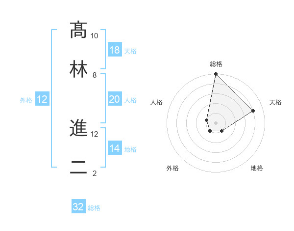 髙林 進二さんの総格は32画の5点!