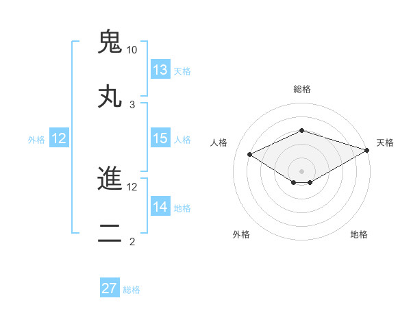 鬼丸 進二さんの天格は13画の5点!