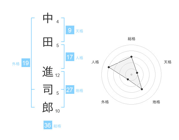中田 進司郎さんを姓名の画数から五運を鑑定