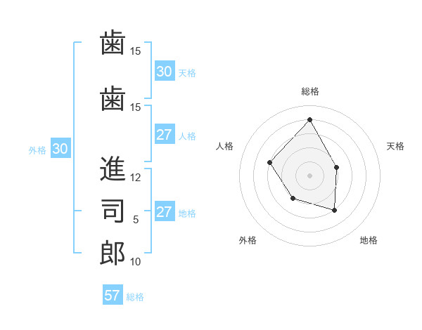 歯歯 進司郎さんを姓名の画数から五運を鑑定