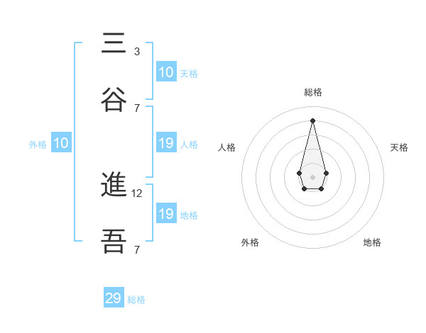 三谷 進吾さんの総格は29画の4点!