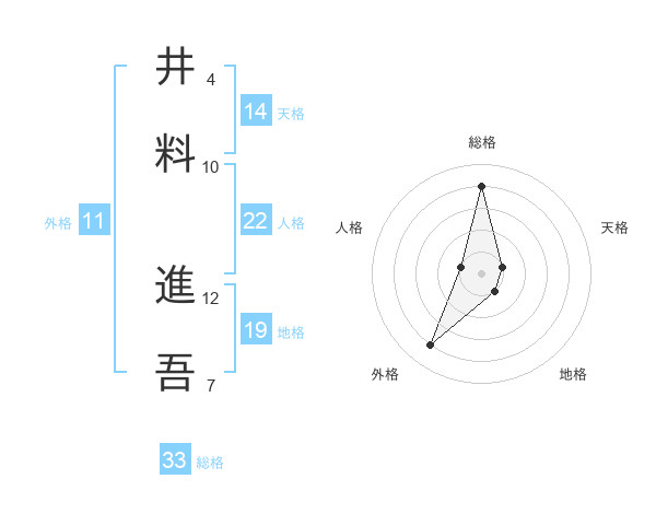 井料 進吾さんの総格は33画の4点!