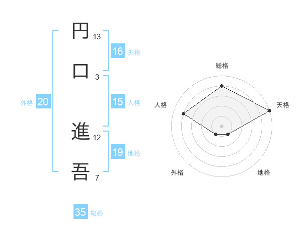 円口 進吾さんの総格は35画の4点!
