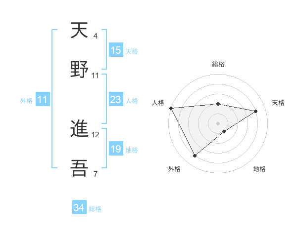 天野 進吾さんの総格は34画の2点!