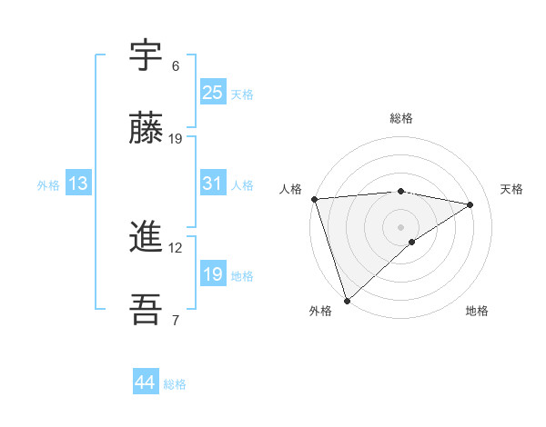 宇藤 進吾さんを姓名の画数から五運を鑑定