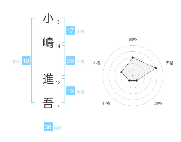小嶋 進吾さんを姓名の画数から五運を鑑定