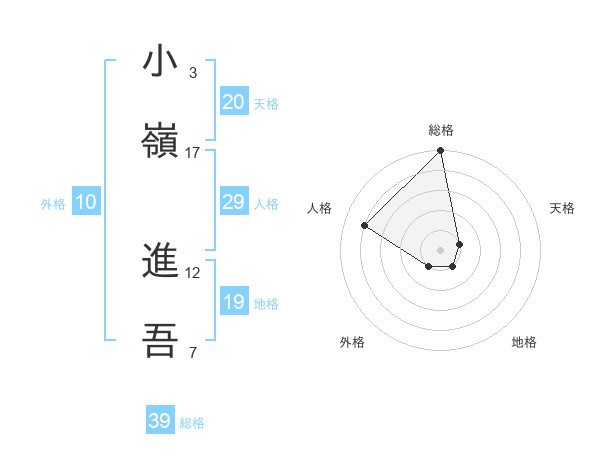 小嶺 進吾さんを姓名の画数から五運を鑑定