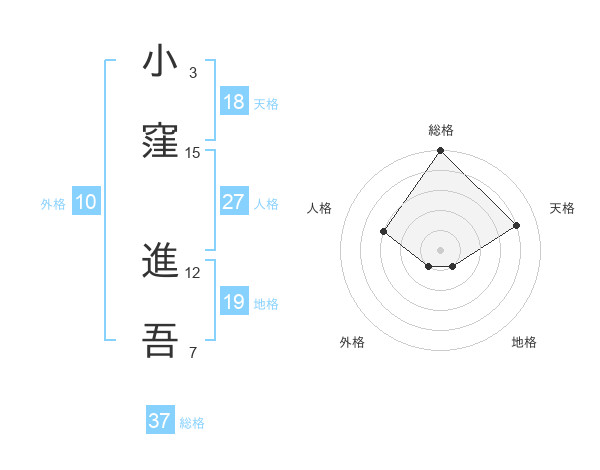 小窪 進吾さんを姓名の画数から五運を鑑定