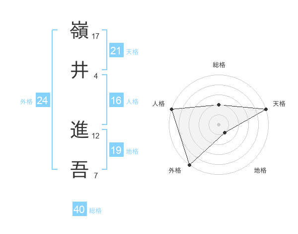嶺井 進吾さんの天格は21画の5点!