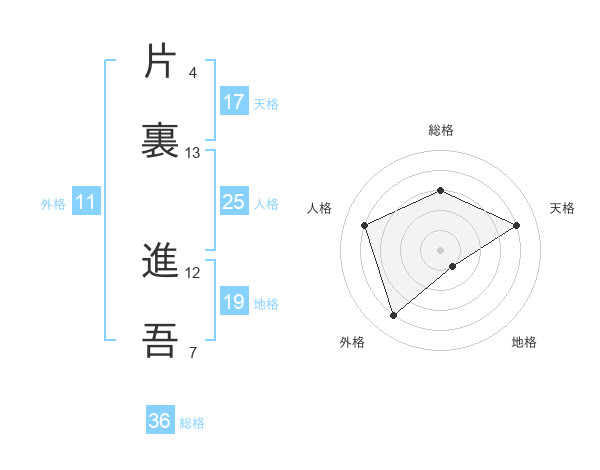 片裏 進吾さんの天格は17画の4点!