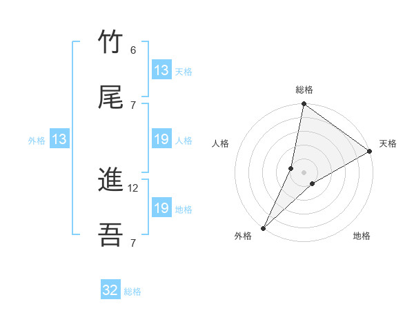 竹尾 進吾さんを姓名の画数から五運を鑑定