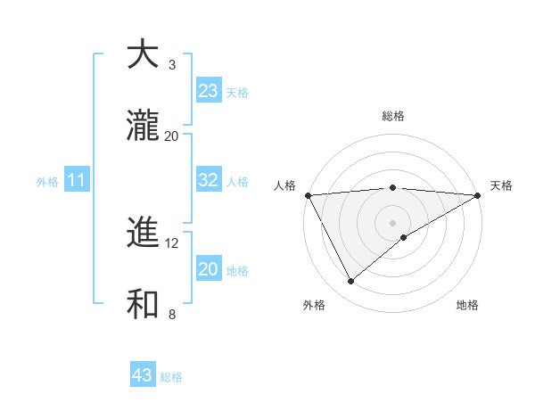 大瀧 進和さんを姓名の画数から五運を鑑定