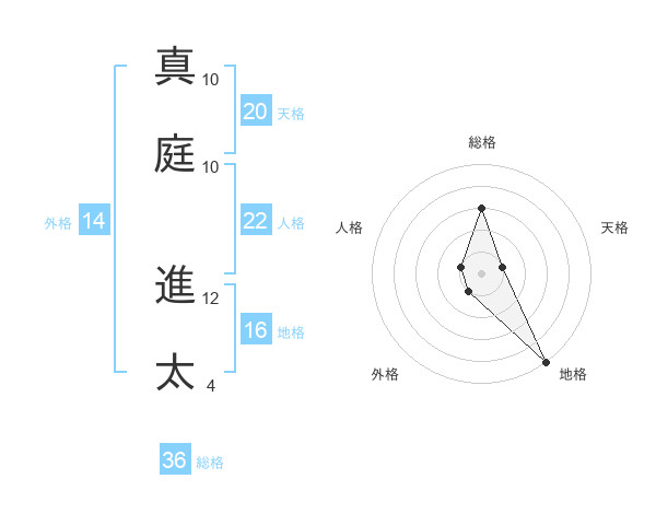 真庭 進太さんの地格は16画の5点!