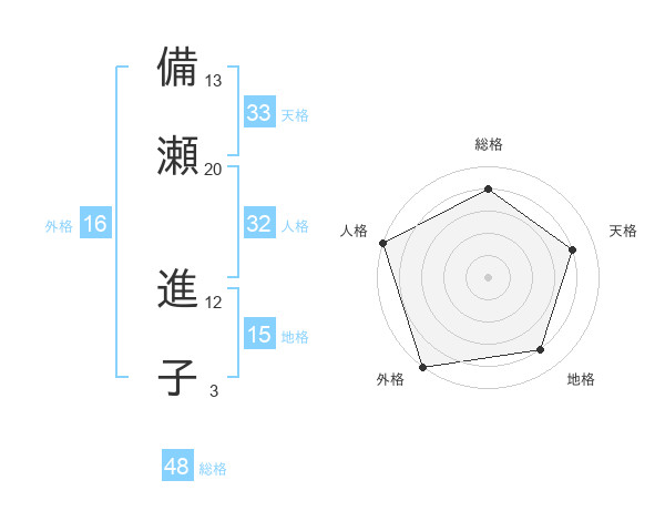 備瀬 進子さんの総格は48画の4点!