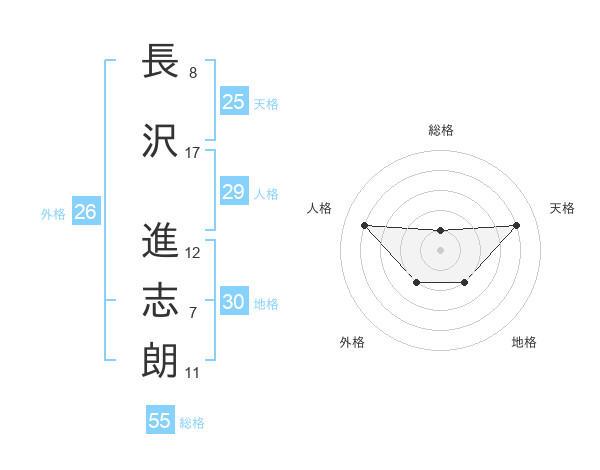 長沢 進志朗さんを姓名の画数から五運を鑑定