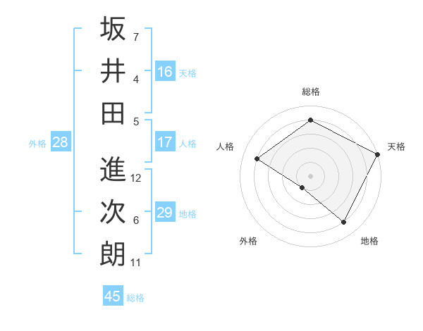 坂井田 進次朗さんを姓名の画数から五運を鑑定