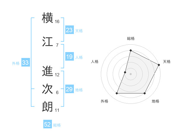 横江 進次朗さんを姓名の画数から五運を鑑定