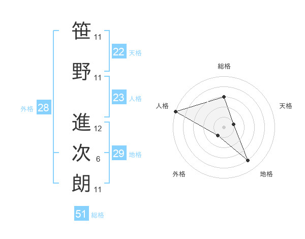 笹野 進次朗さんの総格は51画の3点!
