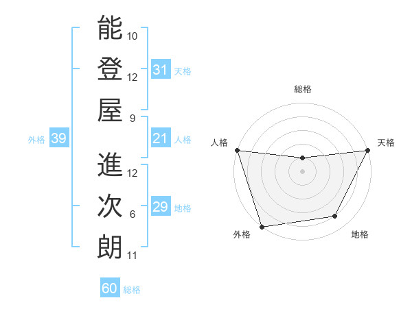 能登屋 進次朗さんを姓名の画数から五運を鑑定