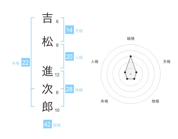 吉松 進次郎さんの総格は42画の3点!