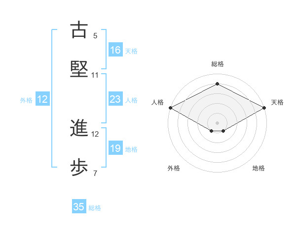 古堅 進歩さんを姓名の画数から五運を鑑定