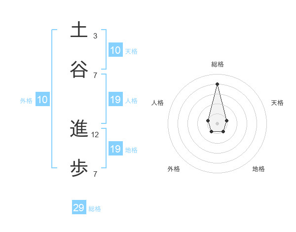 土谷 進歩さんの総格は29画の4点!