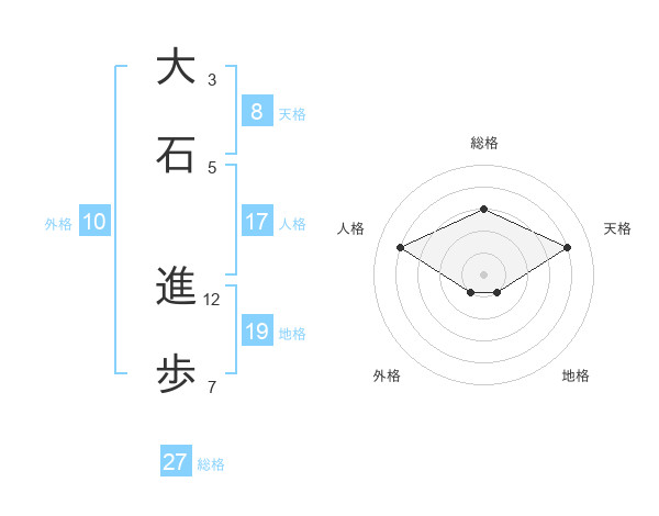 大石 進歩さんの総格は27画の3点!