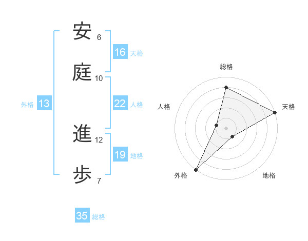 安庭 進歩さんの外格は13画の5点!