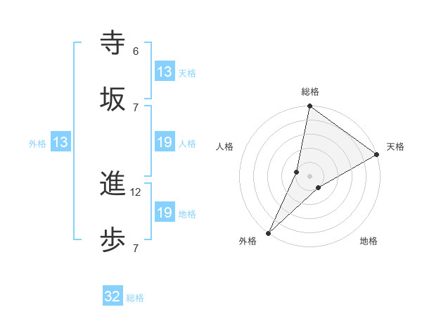 寺坂 進歩さんの外格は13画の5点!