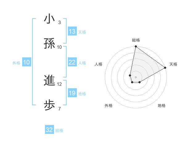 小孫 進歩さんの総格は32画の5点!