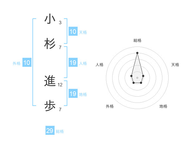 小杉 進歩さんを姓名の画数から五運を鑑定
