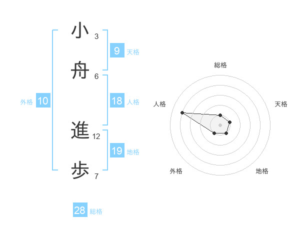小舟 進歩さんを姓名の画数から五運を鑑定