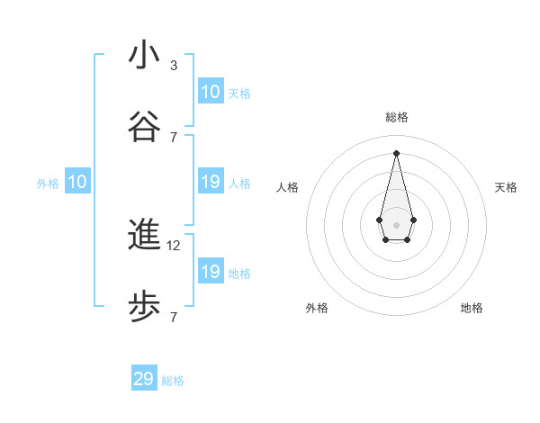 小谷 進歩さんの総格は29画の4点!