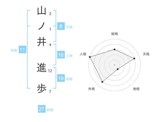 山ノ井 進歩さんを姓名の画数から五運を鑑定