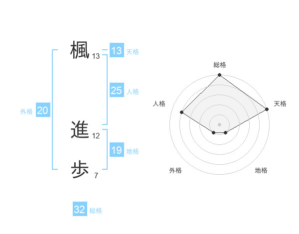 楓 進歩さんの天格は13画の5点!