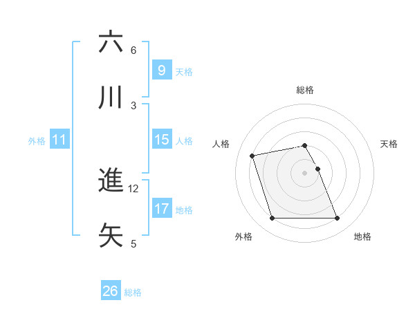 六川 進矢さんの総格は26画の2点!