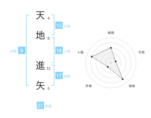 天地 進矢さんの総格は27画の3点!