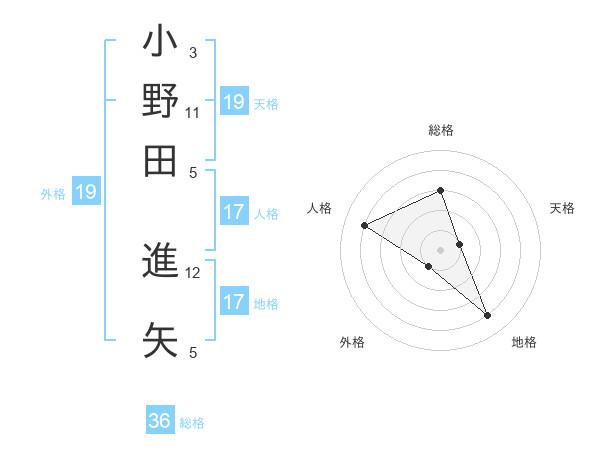 小野田 進矢さんを姓名の画数から五運を鑑定