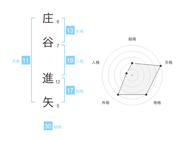 庄谷 進矢さんを姓名の画数から五運を鑑定