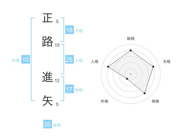 正路 進矢さんの総格は35画の4点!