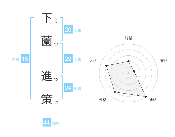 下薗 進策さんの総格は44画の2点!