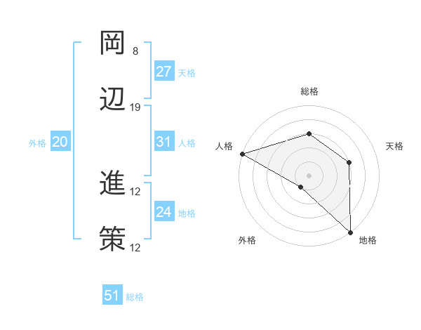 岡辺 進策さんの総格は51画の3点!