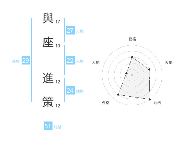 與座 進策さんの総格は51画の3点!