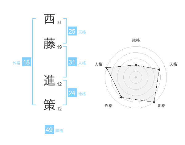西藤 進策さんの総格は49画の2点!
