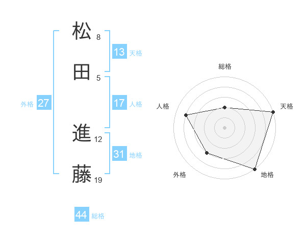 松田 進藤さんの総格は44画の2点!